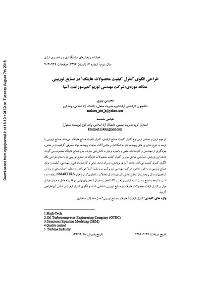 طراحی الگوی کنترل کیفیت محصولات هایتک در صنایع توربینی مطالعه موردی: شرکت مهندسی توربو کمپرسور نفت آسیا