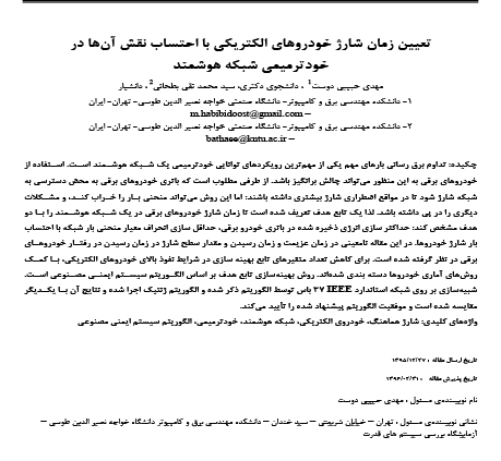تعیین زمان شارژ خودروهای الکتریکی با احتساب نقش آنها در خودترمیمی شبکه هوشمند