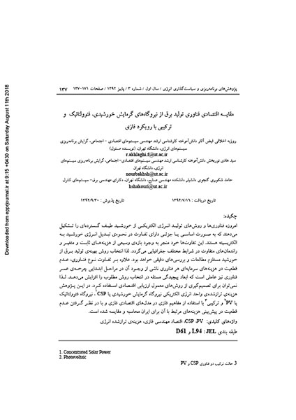 مقایسه اقتصادی فناوری تولید برق از نیروگاههای گرمایش خورشیدی، فتوولتائیک و ترکیبی با رویکرد فازی