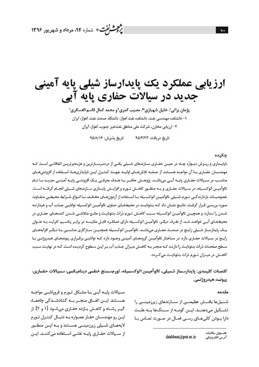 ارزیابی عملکرد یک پایدارساز شیلی پایه آمینی جدید در سیالات حفاری پایه آبی