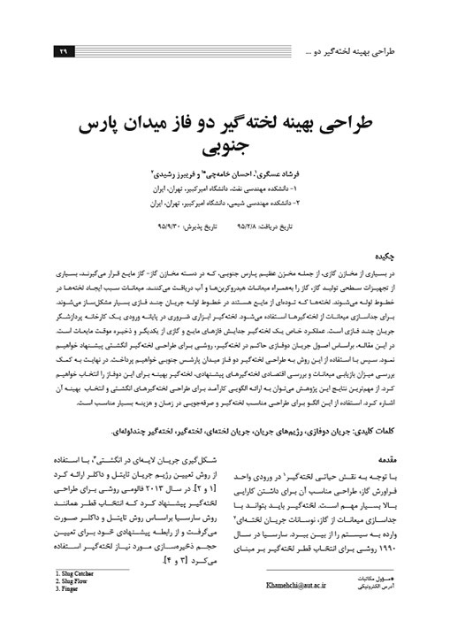 طراحی بهینه لختهگیر دو فاز میدان پارس جنوبی