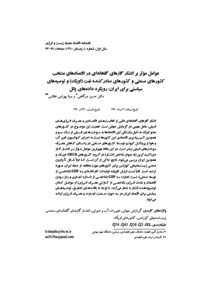 عوامل موثر بر انتشار گازهای گلخانهای در اقتصادهای منتخب کشورهای صنعتی و کشورهای صادرکننده نفت (اوپک) و توصیههای سیاستی برای ایران: رویکرد دادههای پانل