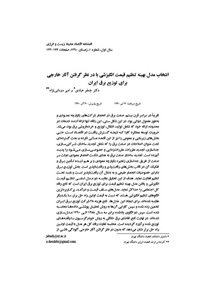 انتخاب مدل بهینه تنظیم قیمت انگیزشی با در نظر گرفتن آثار خارجی برای توزیع برق ایران