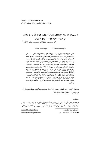 بررسی اثرات رشد اقتصادی، مصرف انرژی و درجه باز بودن تجاری بر کیفیت محیط زیست در ج. ا. ایران