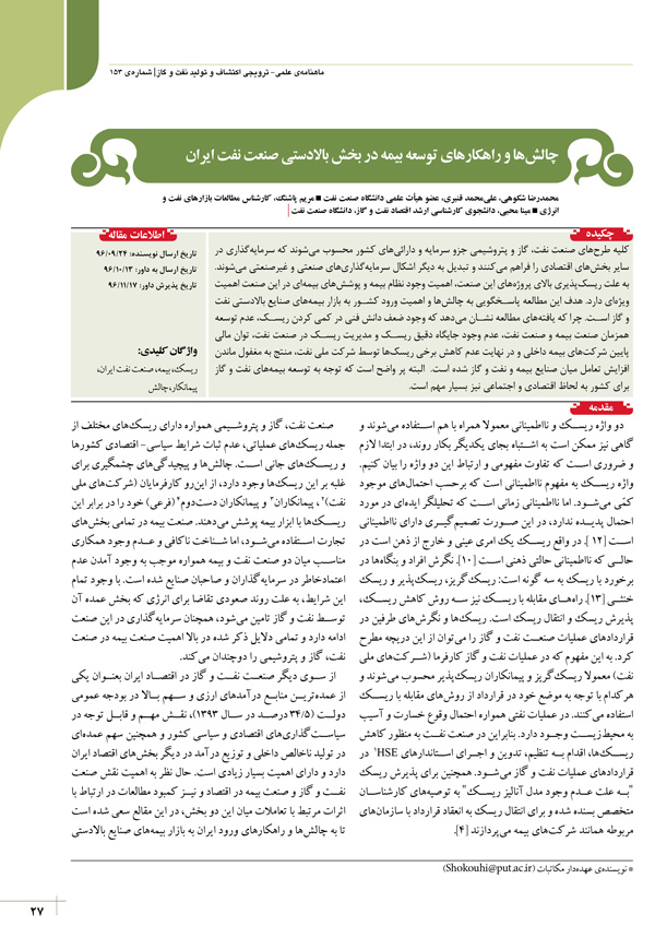 چالشها و راهکارهای توسعه بیمه در بخش بالادستی صنعت نفت ایران